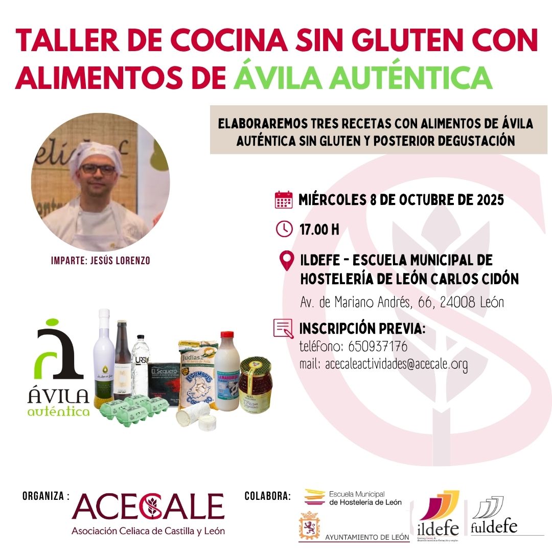 👩🍳 Realizaremos un Taller de cocina sin gluten gratuito para socios con productos de ÁVILA Auténtica, seguido de degustación.